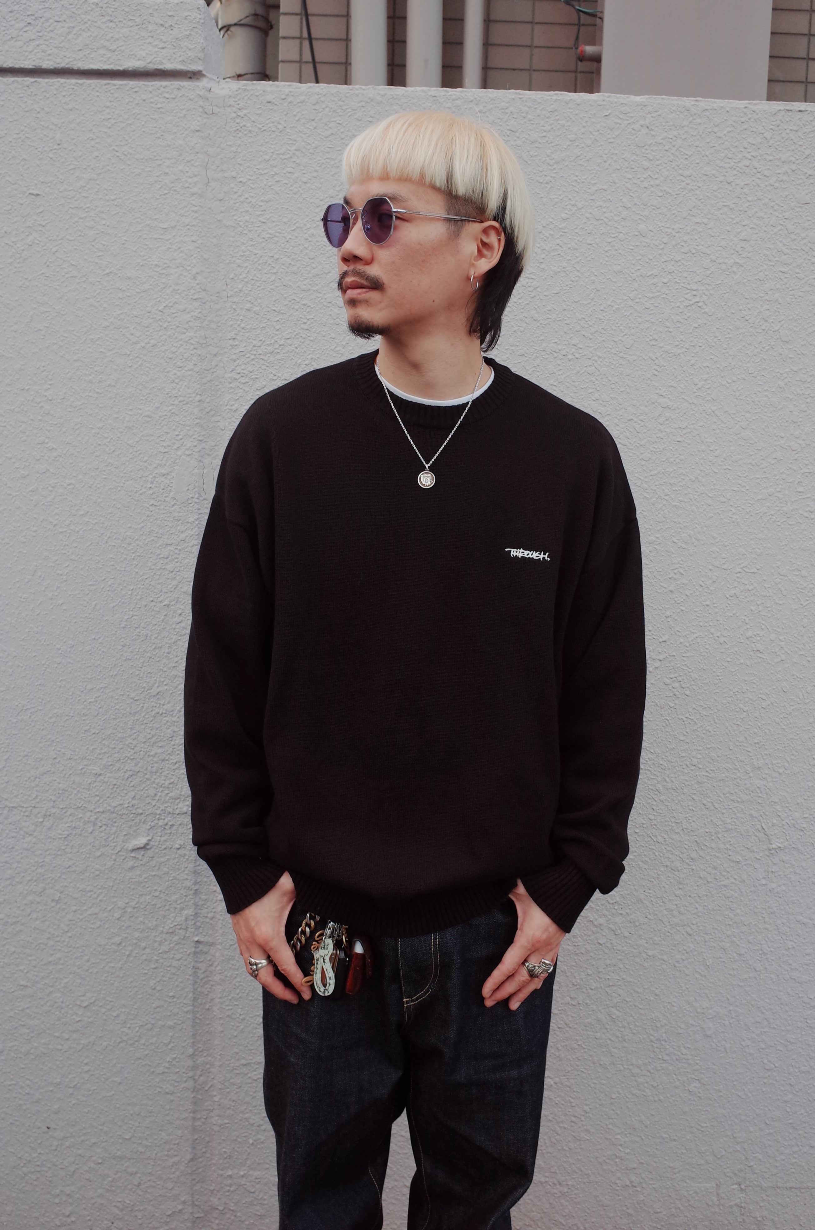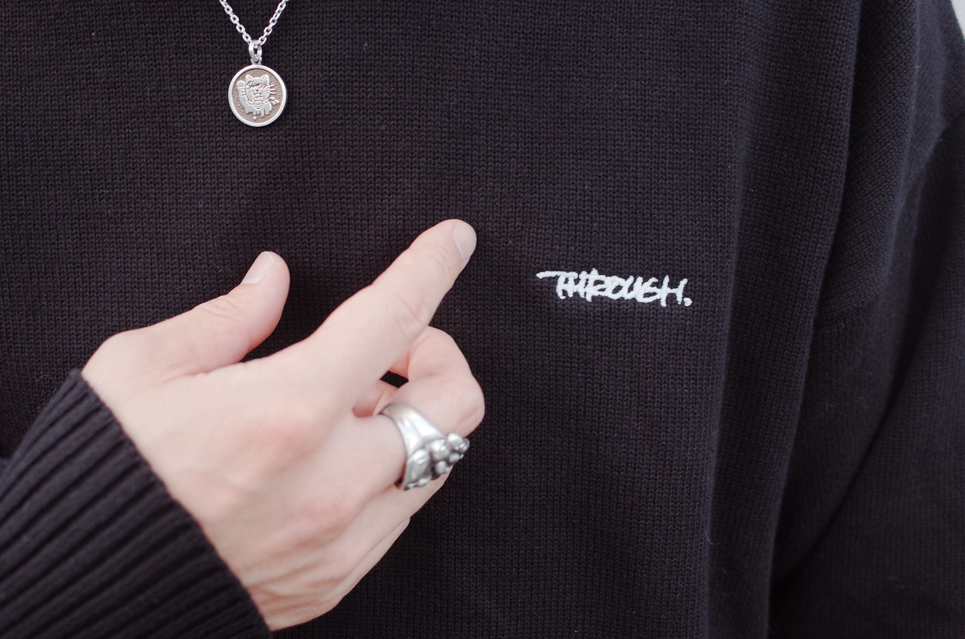 胸にTHROUGH.の刺繍を配置しました。
