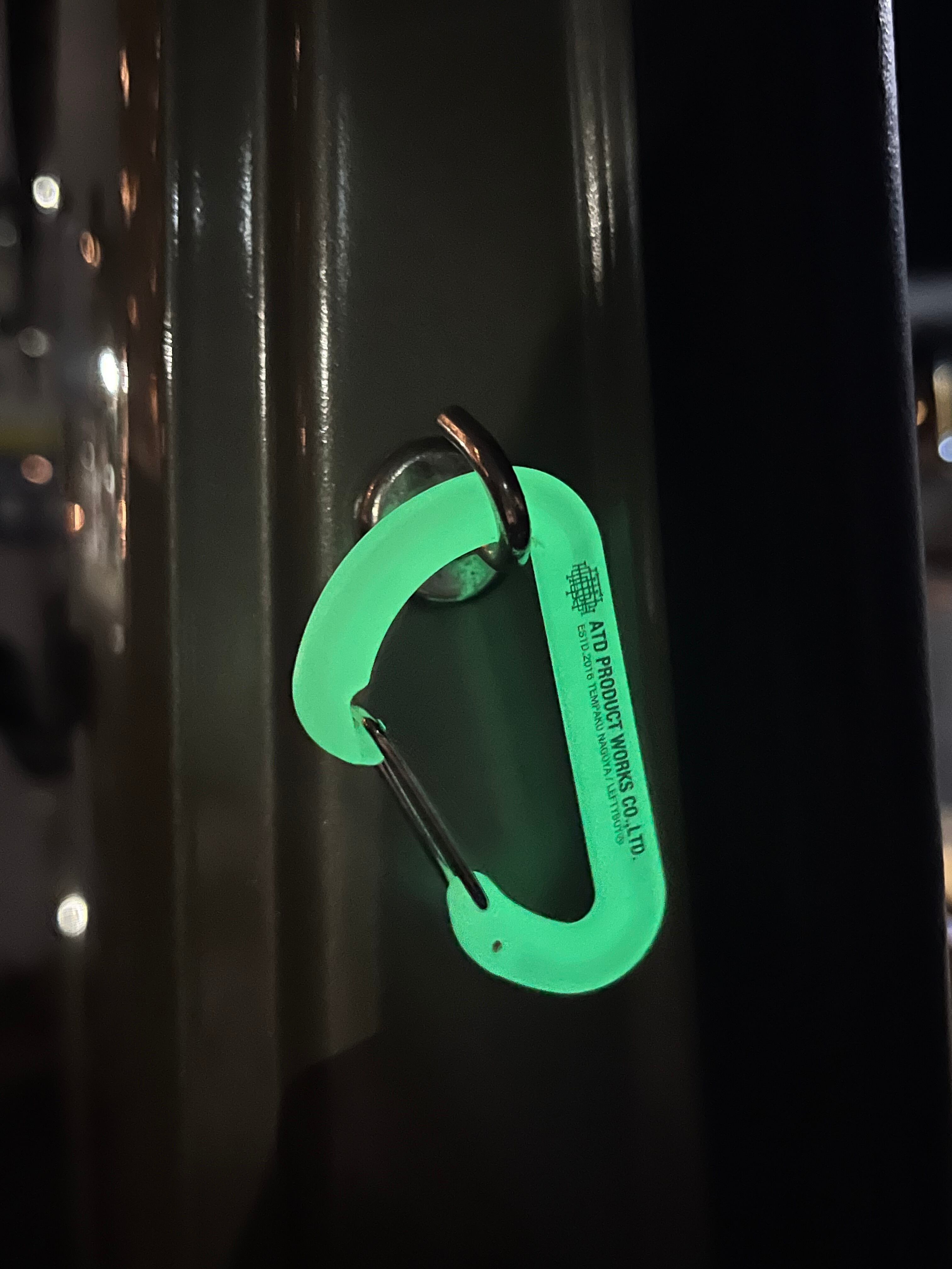 よく光る蓄光のカラビナ。