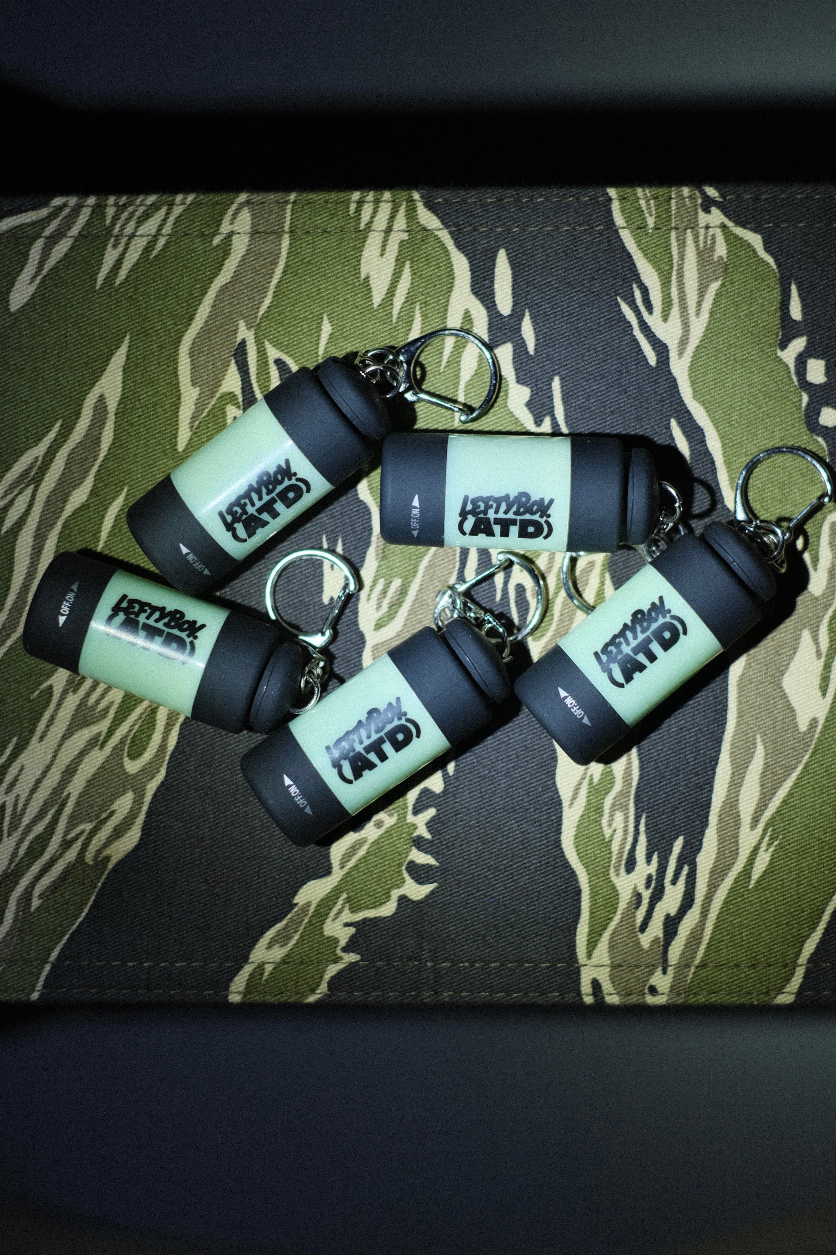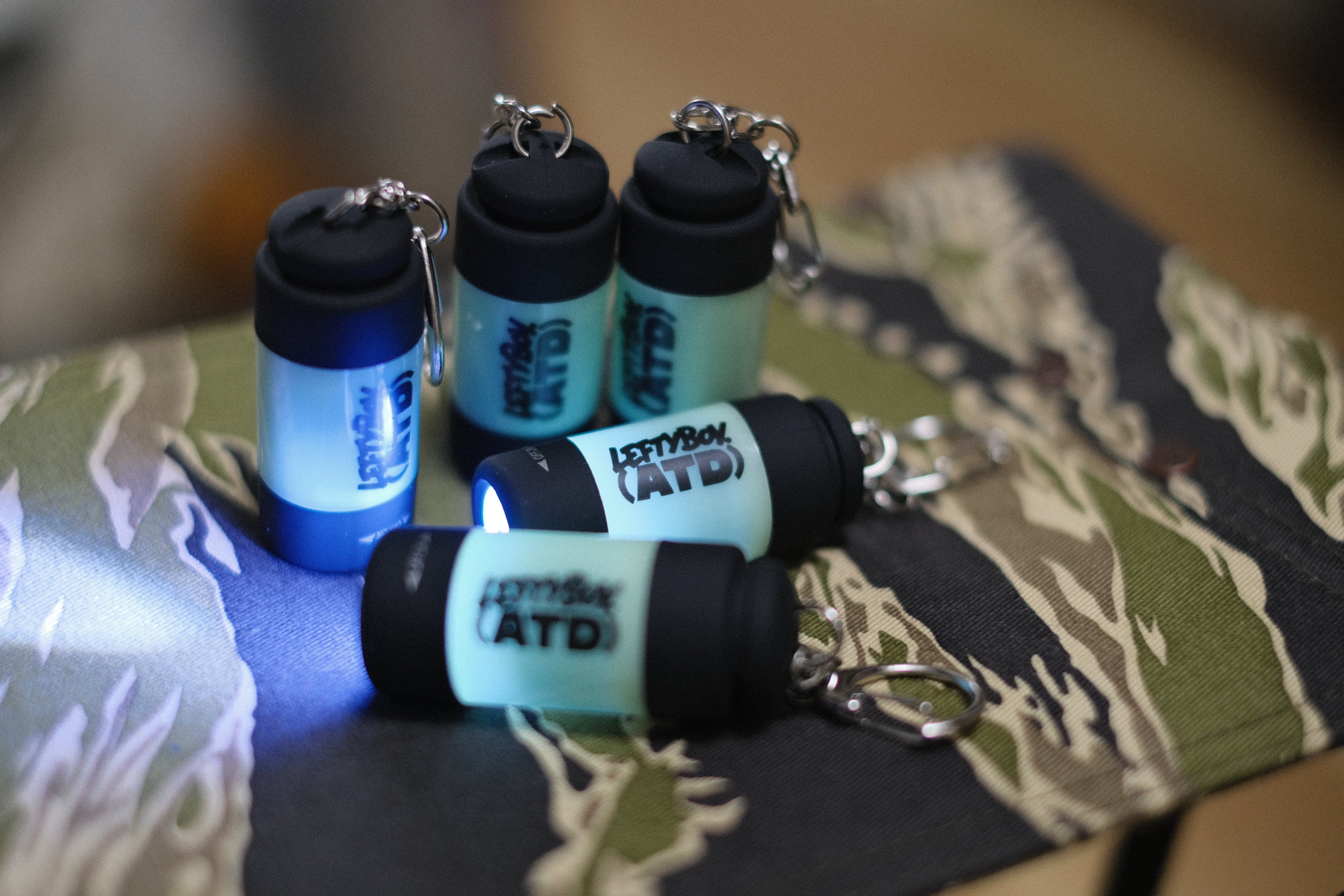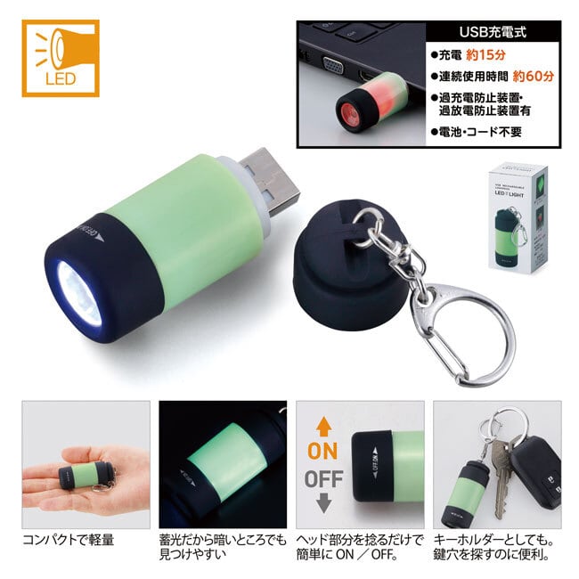 POPなATDロゴが入ったUSB充電式蓄光LEDライト。
